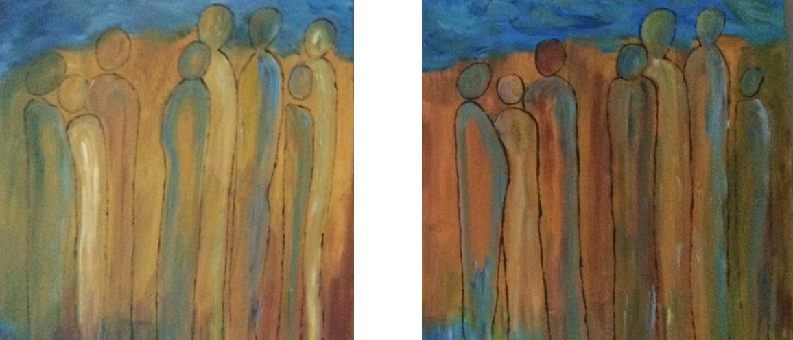 Een globale impressie van het schilderij "The visitors" 100x50cm.