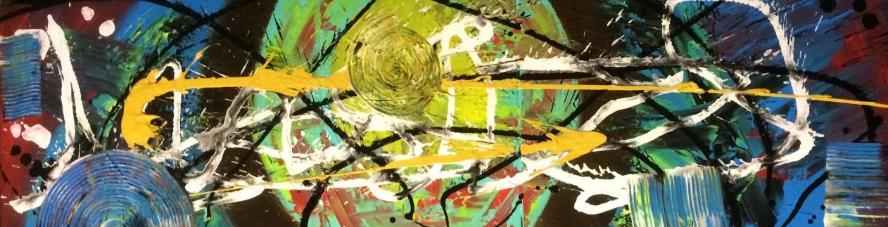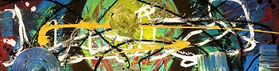 Een globale impressie van het schilderij "Abstract 3 luik" 180x50cm.