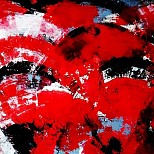 Een globale impressie van het schilderij "Attitude" 100x100cm.