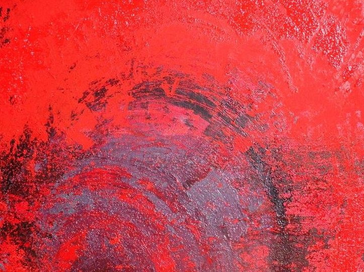 Een globale impressie van het schilderij "Redaround" 90x90cm.
