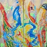 Een globale impressie van het schilderij "Arena" 100x100cm.