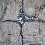 Rotterdam is de stad waar ik geboren en opgegroeid ben. Deze stad fascineert me nog steeds, zeker nu er steeds nieuwe architectuur te bewonderen is. In dit schilderij, dat ik maakte na een bezoek aan een tentoonstelling van Hundertwasser, zijn alle hits van het toeristische Rotterdam te vinden. Een veelkleurig schilderij waar je steeds iets nieuws op kunt ontdekken. Op mijn website zijn ook detailfoto's te zien.