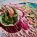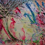 Een globale impressie van het schilderij "De dans" 100x100cm.