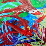 Een globale impressie van het schilderij "Mei" 90x90cm.