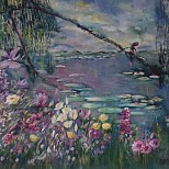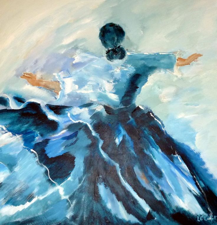 Een globale impressie van het schilderij "Dans" 100x100cm.