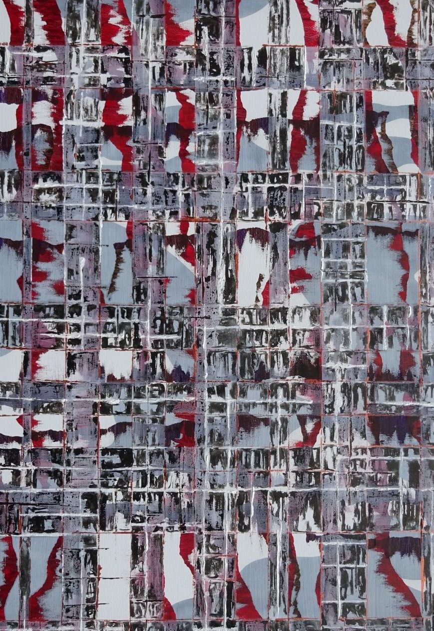 Een globale impressie van het schilderij "Cityscape" 70x100cm.