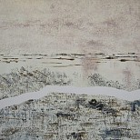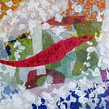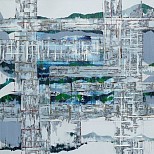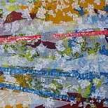 Een globale impressie van het schilderij "Samenhang" 100x100cm.