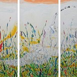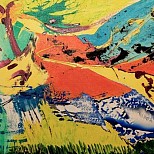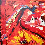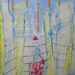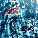 Een globale impressie van het schilderij "Verstrengeld" 100x100cm.