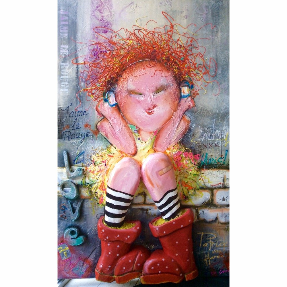 Een globale impressie van het schilderij "J'aime le Rouge" 100x160cm.