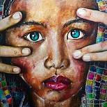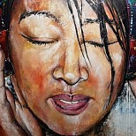 Een globale impressie van het schilderij "Amorada" 100x100cm.
