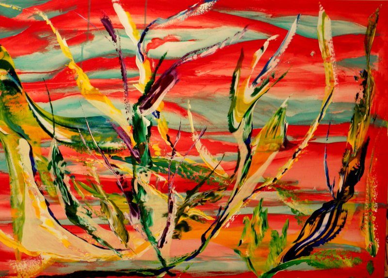 Een globale impressie van het schilderij "Rood riet" 120x80cm.