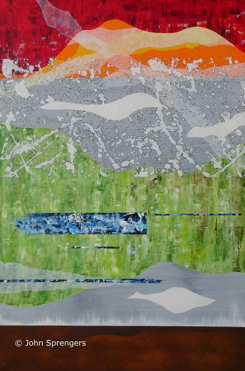 Abstract schilderij: Uitgevoerd in Olieverf, Inkt en Modern Options op Linnen Ingelijst (stalen baklijst) en gesigneerd