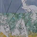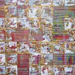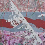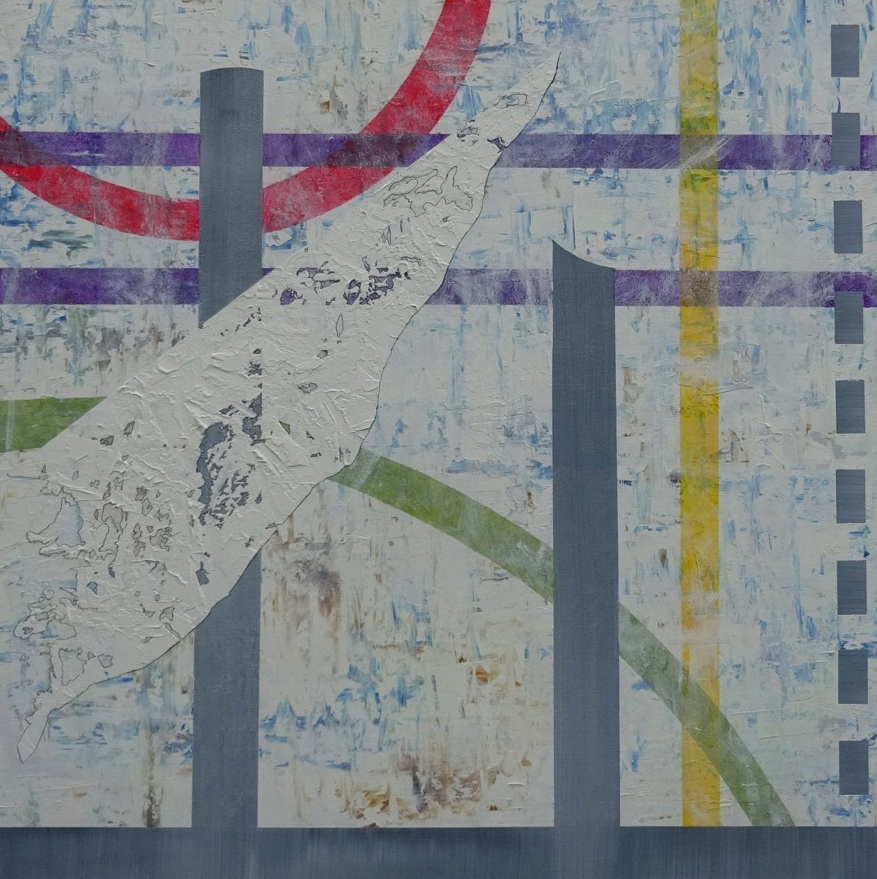 Abstract schilderij geïnspireerd op het lijnenspel in gymzalen en sportvelden. Uitgevoerd in Olieverf en inkt op linnen. Ingelijst (stalen baklijst) en gesigneerd.