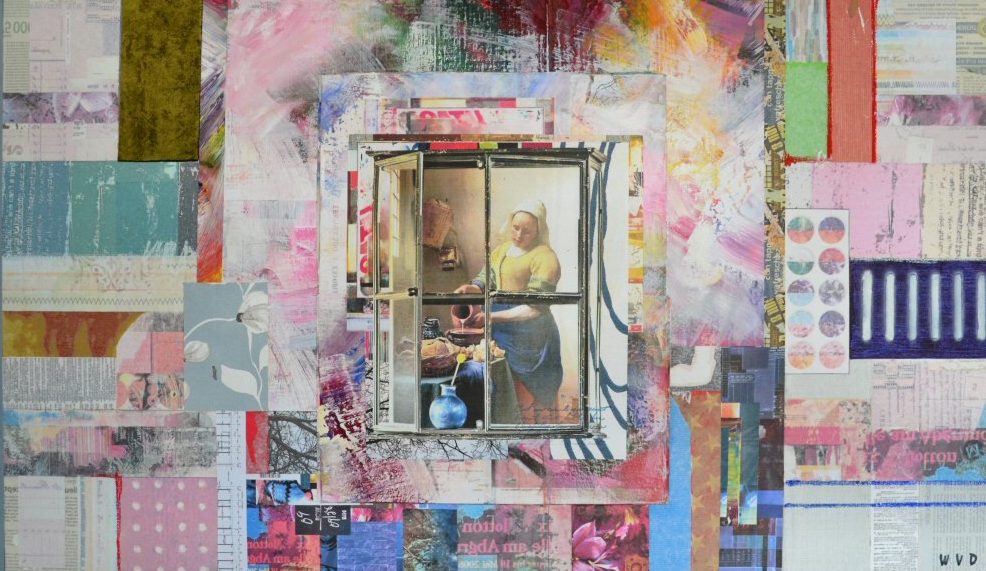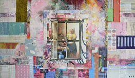 Modern, Abstract, Mixed media schilderij, opgebouwd uit diverse lagen (dekkend en transparant) en met verschillende materialen.70
