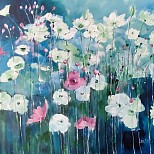 Een globale impressie van het schilderij "Zomerse boeketten" 160x125cm.