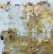 Abstract werk met toepassing van bladgoud en roest.