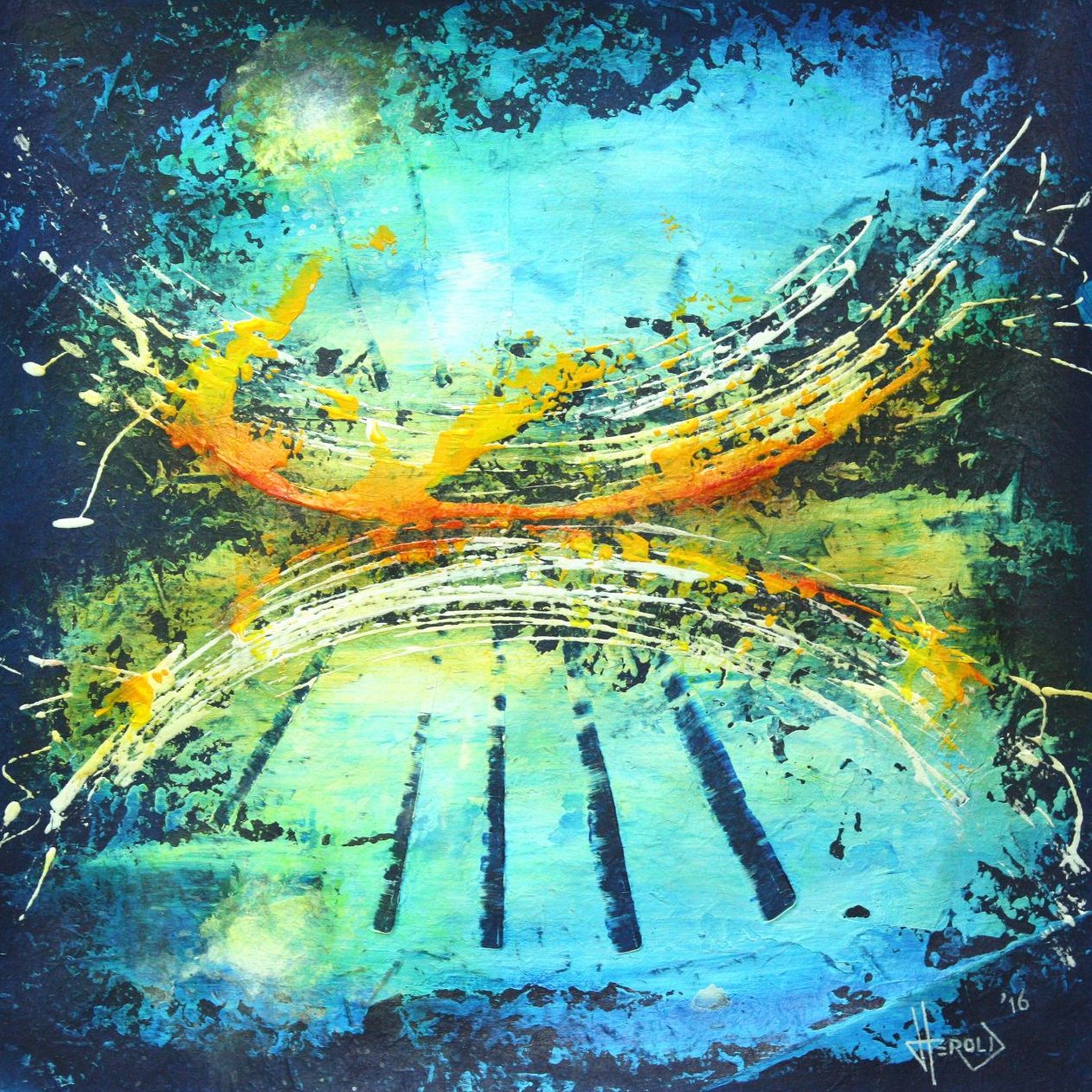 Een globale impressie van het schilderij "Contemplating Summer" 37x37cm.