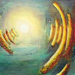 Een globale impressie van het schilderij "Redemption" 37x37cm.