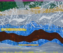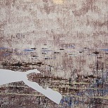 Abstract schilderij uitgevoerd in olieverf en inkt op linnen. 120 x 100 cm. Ingelijst (stalen baklijst) en gesigneerd. Prijs op aanvraag.