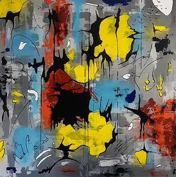 Een globale impressie van het schilderij "Frozen oxygen" 160x160cm.