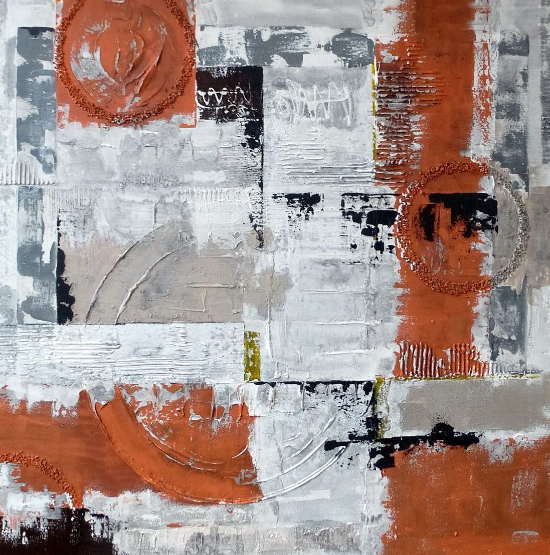 Een globale impressie van het schilderij "Lucky Shot" 100x100cm.