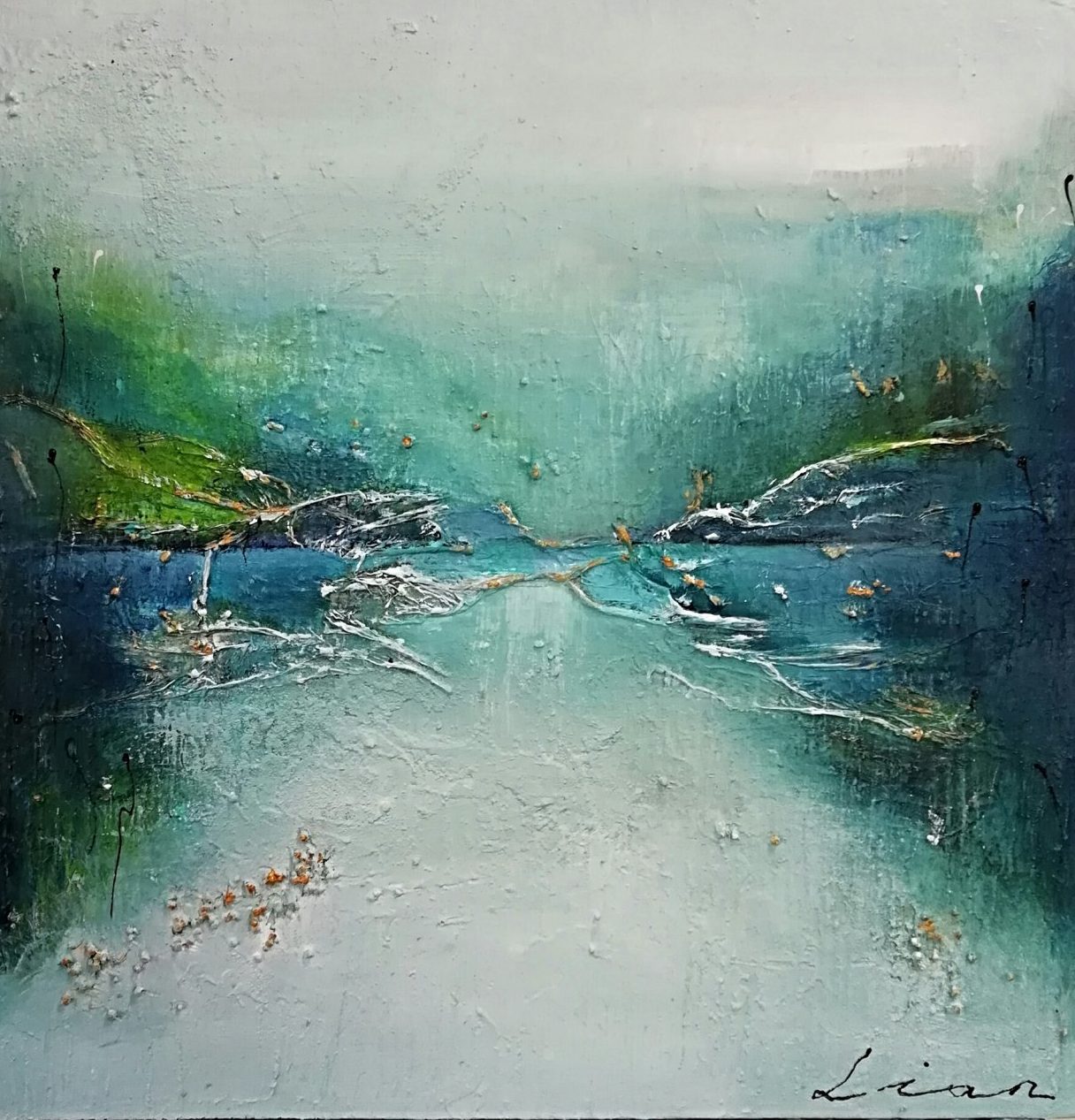 Een globale impressie van het schilderij "Stream" 50x50cm.