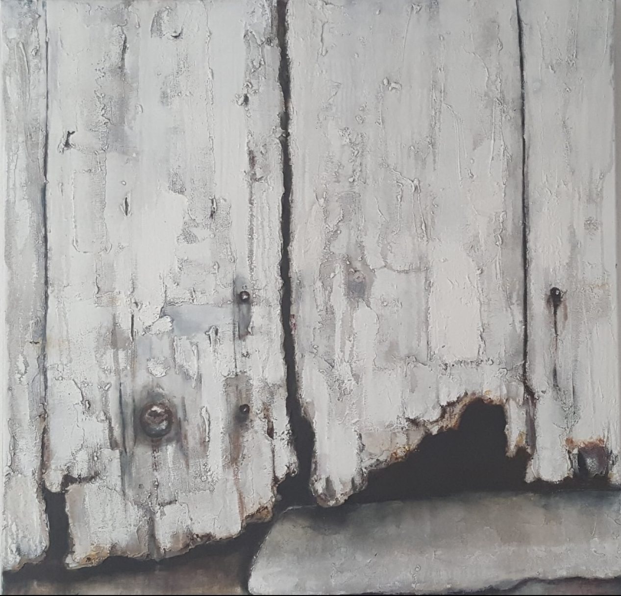 Een globale impressie van het schilderij "Oude deur" 100x100cm.