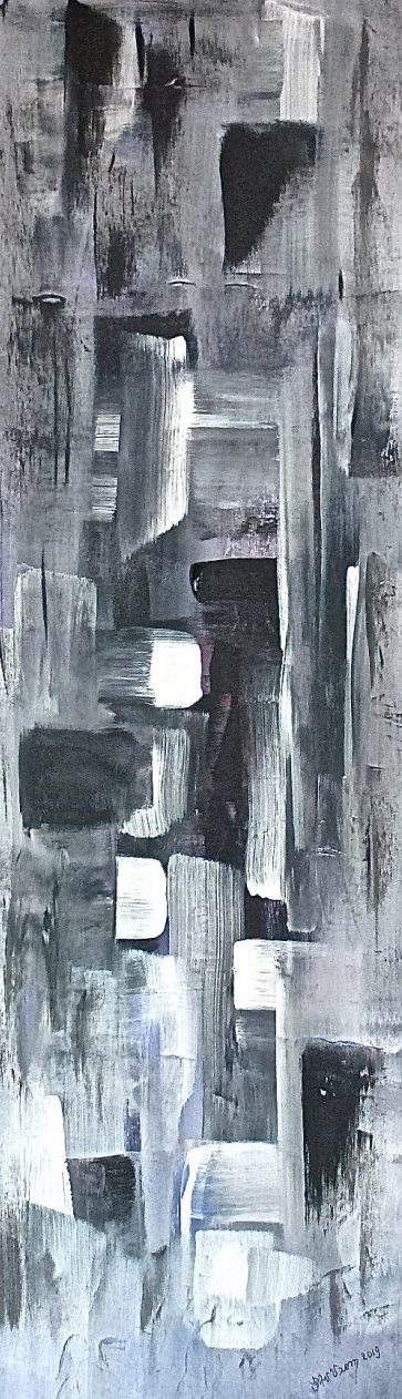 Een globale impressie van het schilderij "Zwart/Wit" 30x100cm.