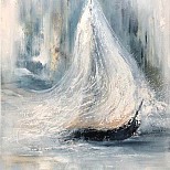 Een globale impressie van het schilderij "Four emotions of life" 100x100cm.