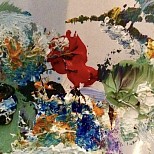 Abstract, struktuur, kleurrijk, acryl op canvas, kwast+paletmes,