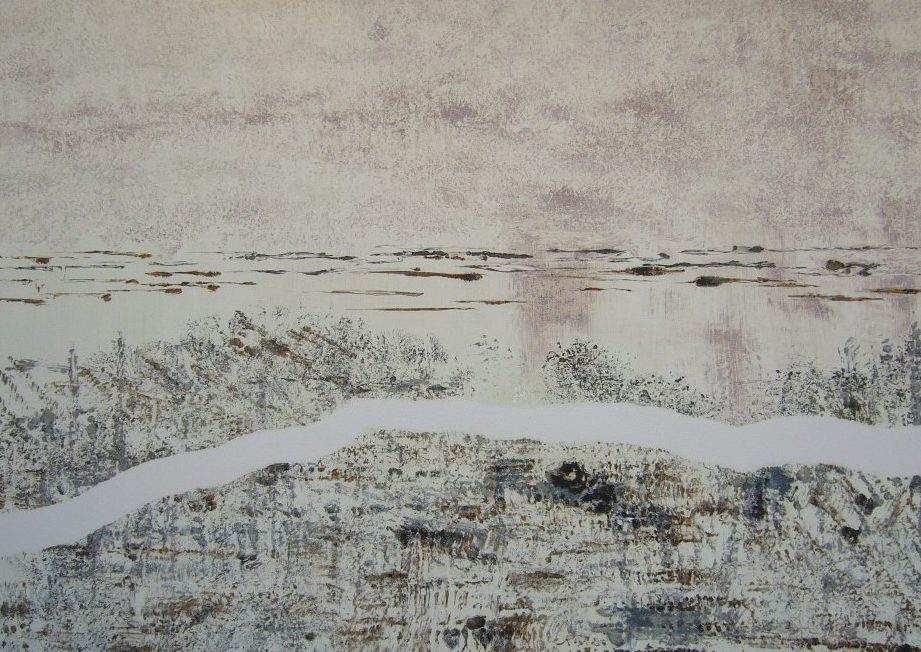 Een globale impressie van het schilderij "GESCHONDEN LAND nr. 1" 76x56cm.
