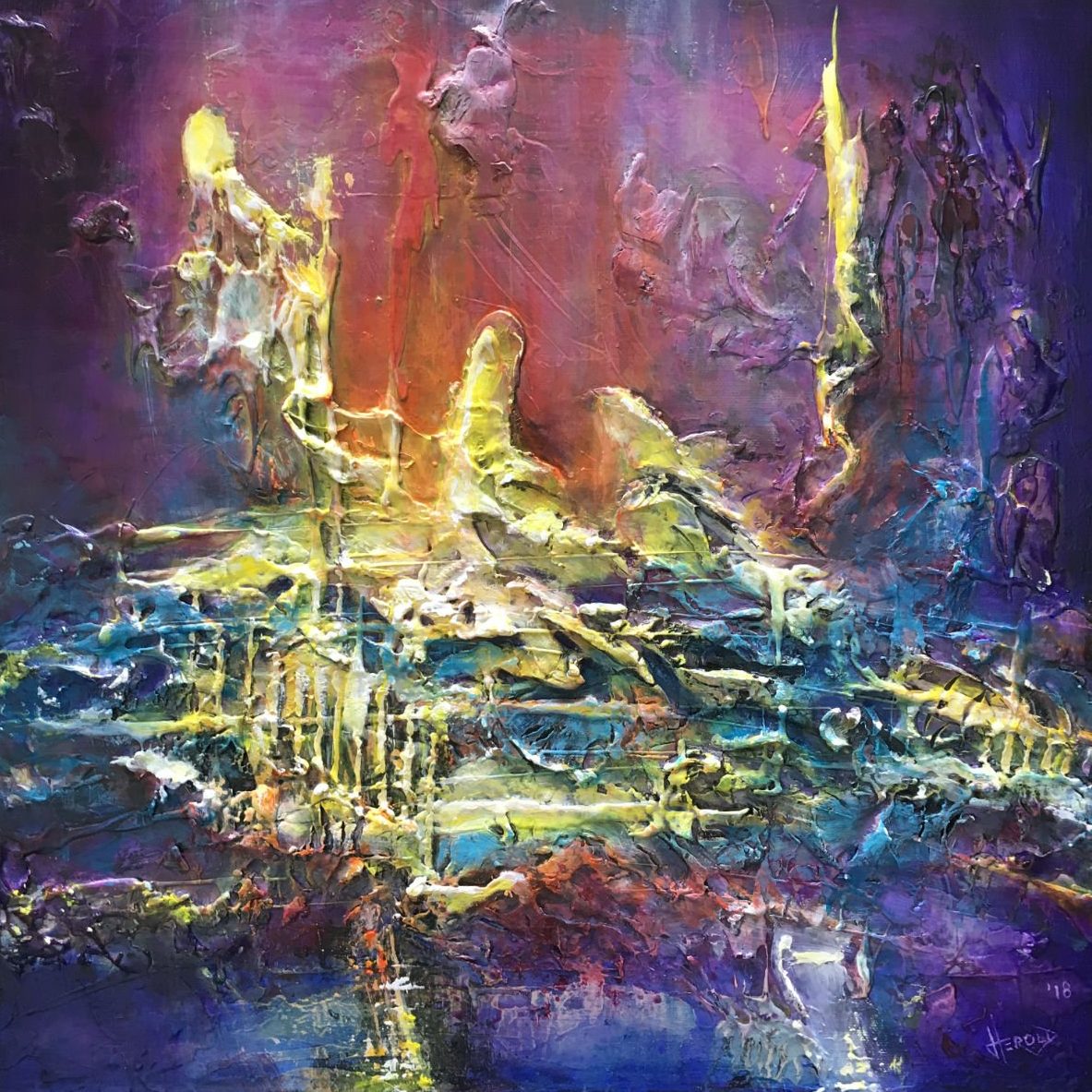Een globale impressie van het schilderij "Once the Smoke Cleared" 40x40cm.