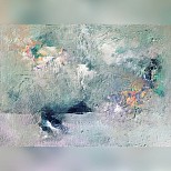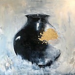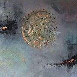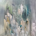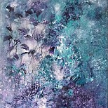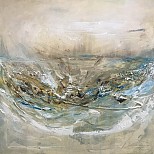 Een globale impressie van het schilderij "Find the silence" 100x100cm.