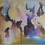 Een globale impressie van het schilderij "Zonder titel" 80x80cm.