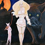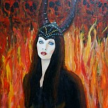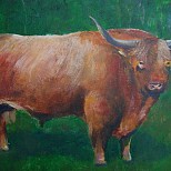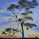 Een globale impressie van het schilderij "Avondzon aan de plas in Almere" 70x60cm.