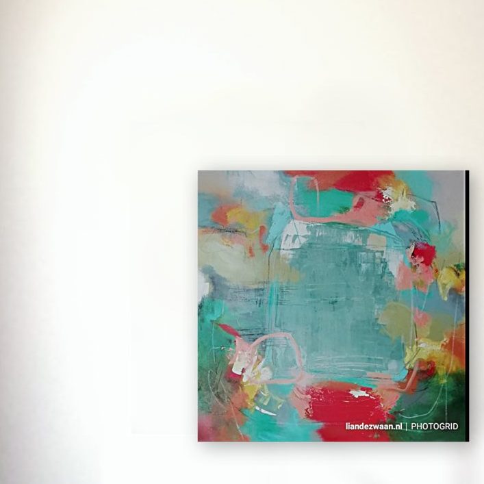 Een globale impressie van het schilderij "Green green grass of home" 90x90cm.