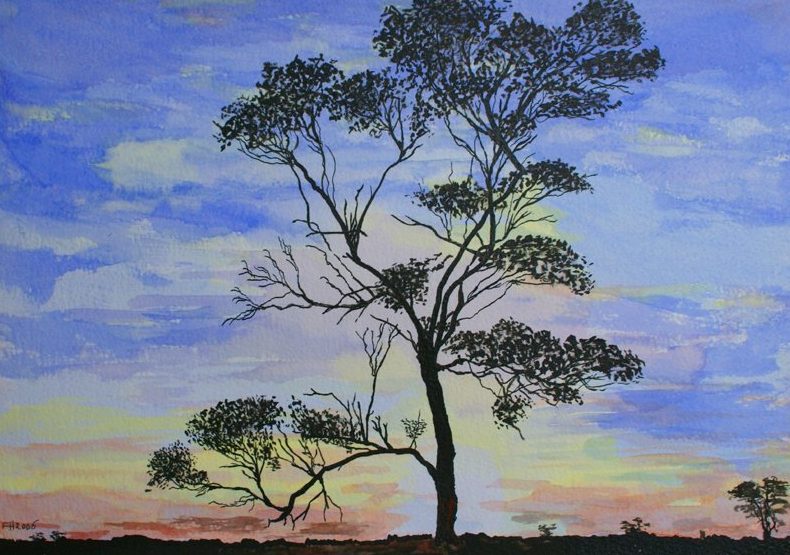 Een globale impressie van het schilderij "Boomsilhouet" 40x30cm.