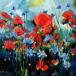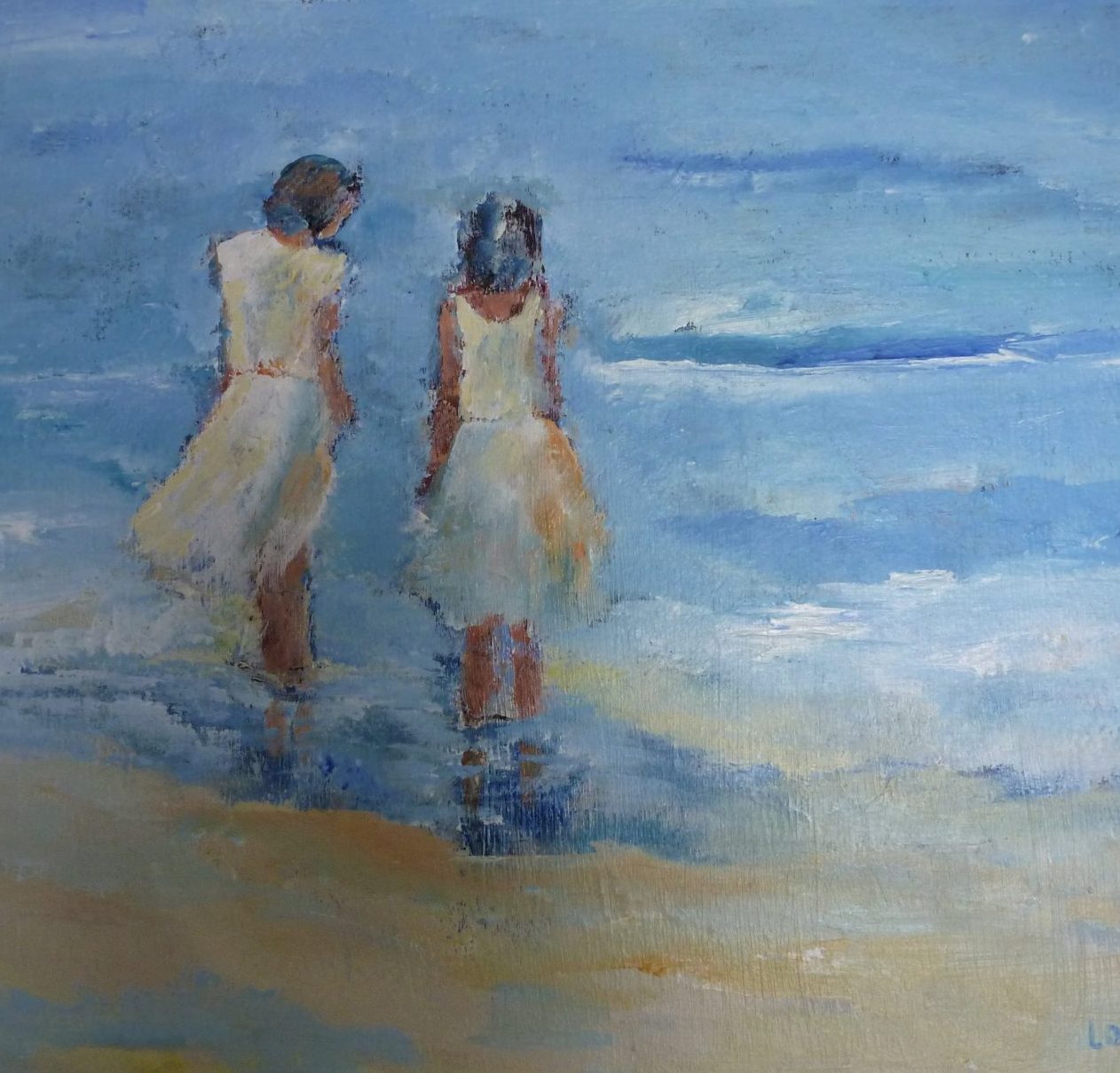 Een globale impressie van het schilderij "Kindjes aan zee" 60x60cm.