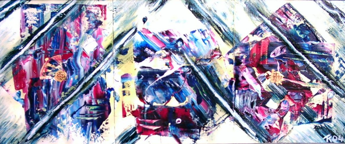 Drie luik, Acryl op katoen in een houten met lood bekleden lijst