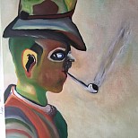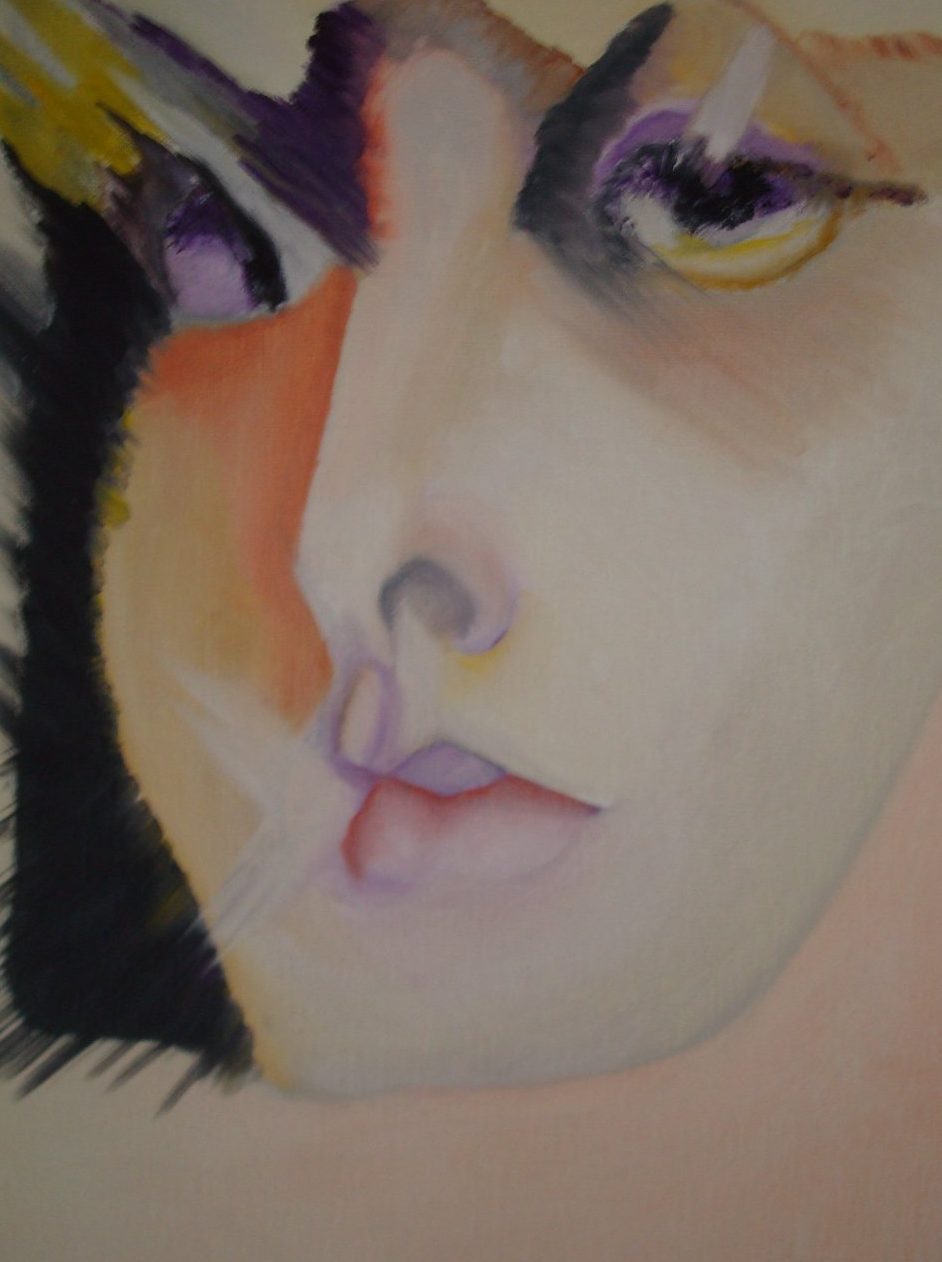 Een globale impressie van het schilderij "Denkend" 50x60cm.