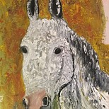 Paerd olieschilderij met paletmes