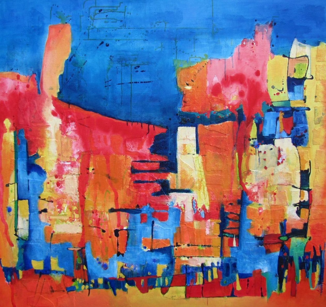 Een globale impressie van het schilderij "Colorful Nature" 140x130cm.