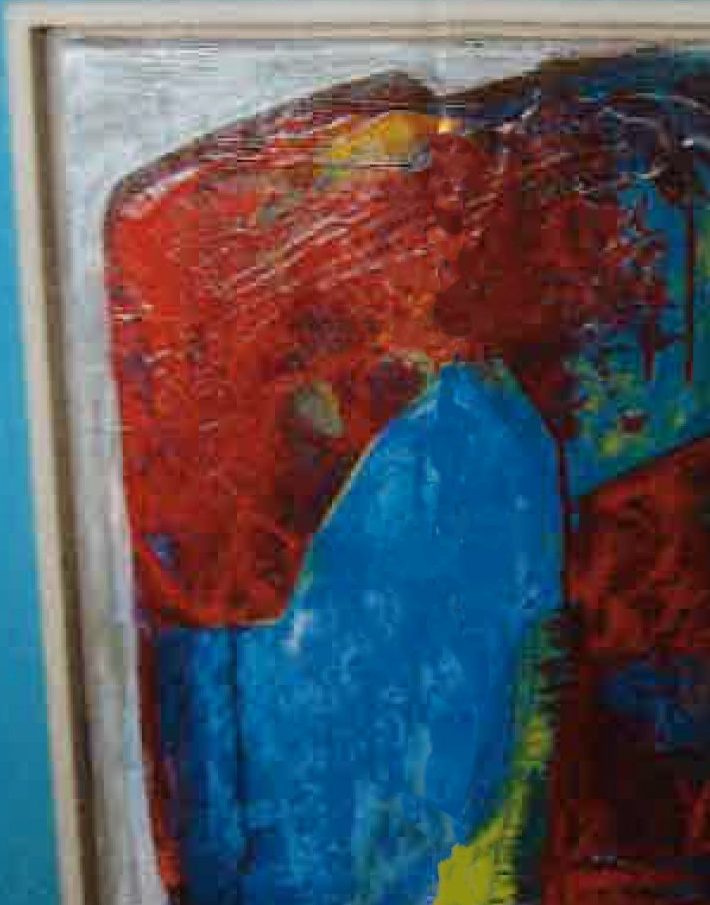 Een globale impressie van het schilderij "Abstract -selfportret" 40x70cm.
