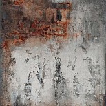 Ik hou van vergankelijkheid en ben altijd geboeid door roest en oxidatie. Dit verwerk ik in mijn mixedmediadoeken