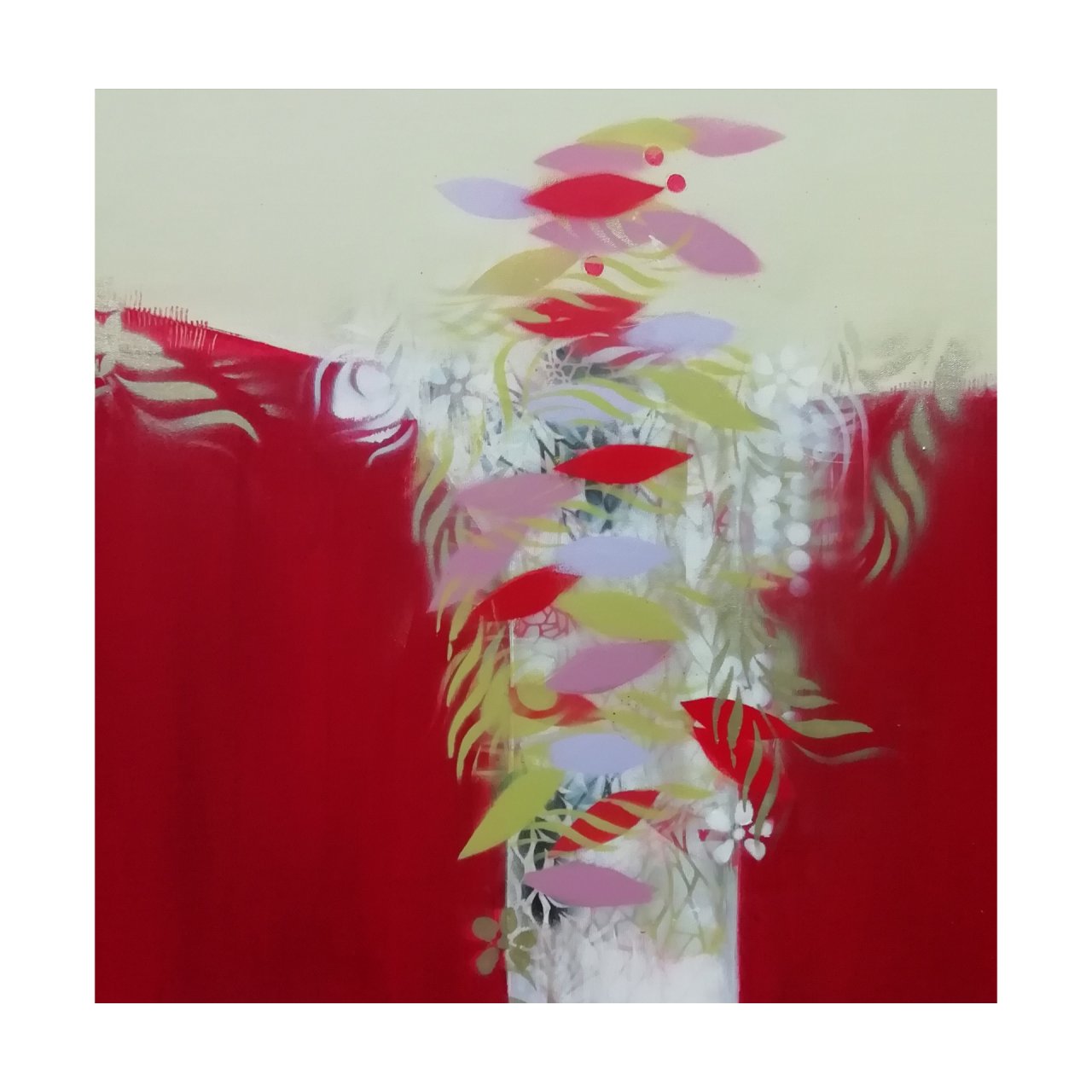 Abstract schilderij, mixed media, langwerpig, kleurrijk