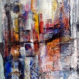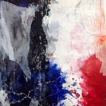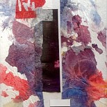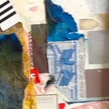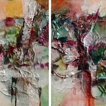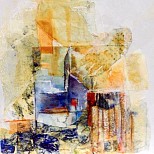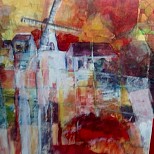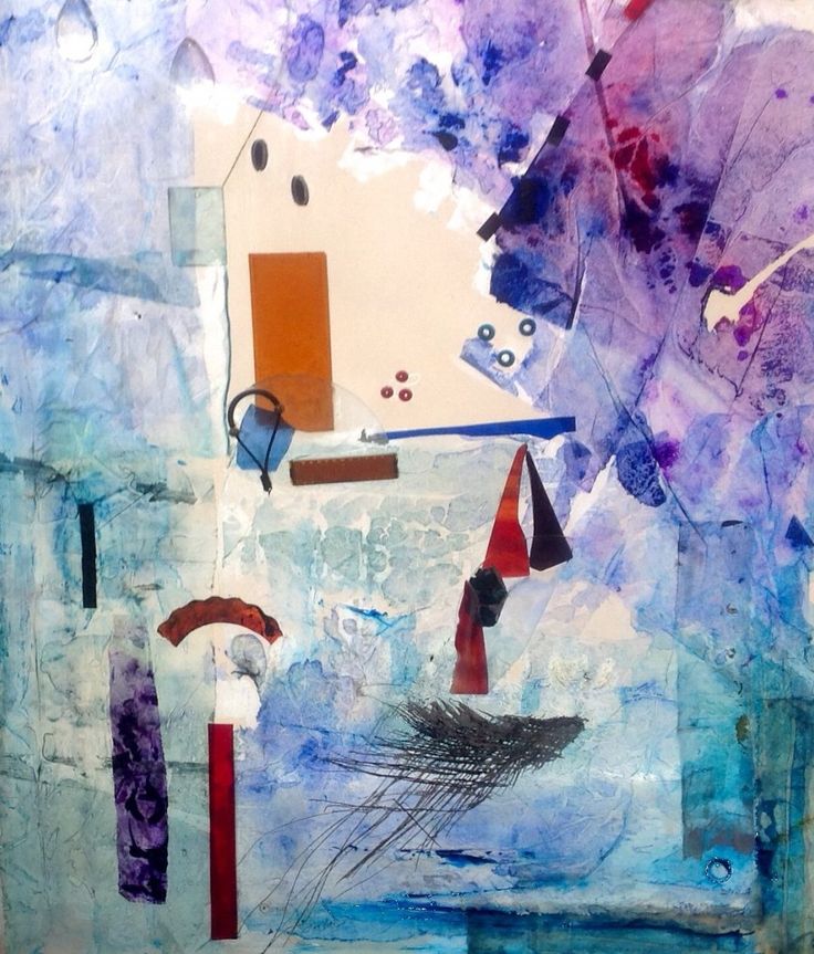 Impressie van het land tussen zee en land ,werk is op glas , met glas ,zijde, kristal, rijstpapier, palmschors en kralen