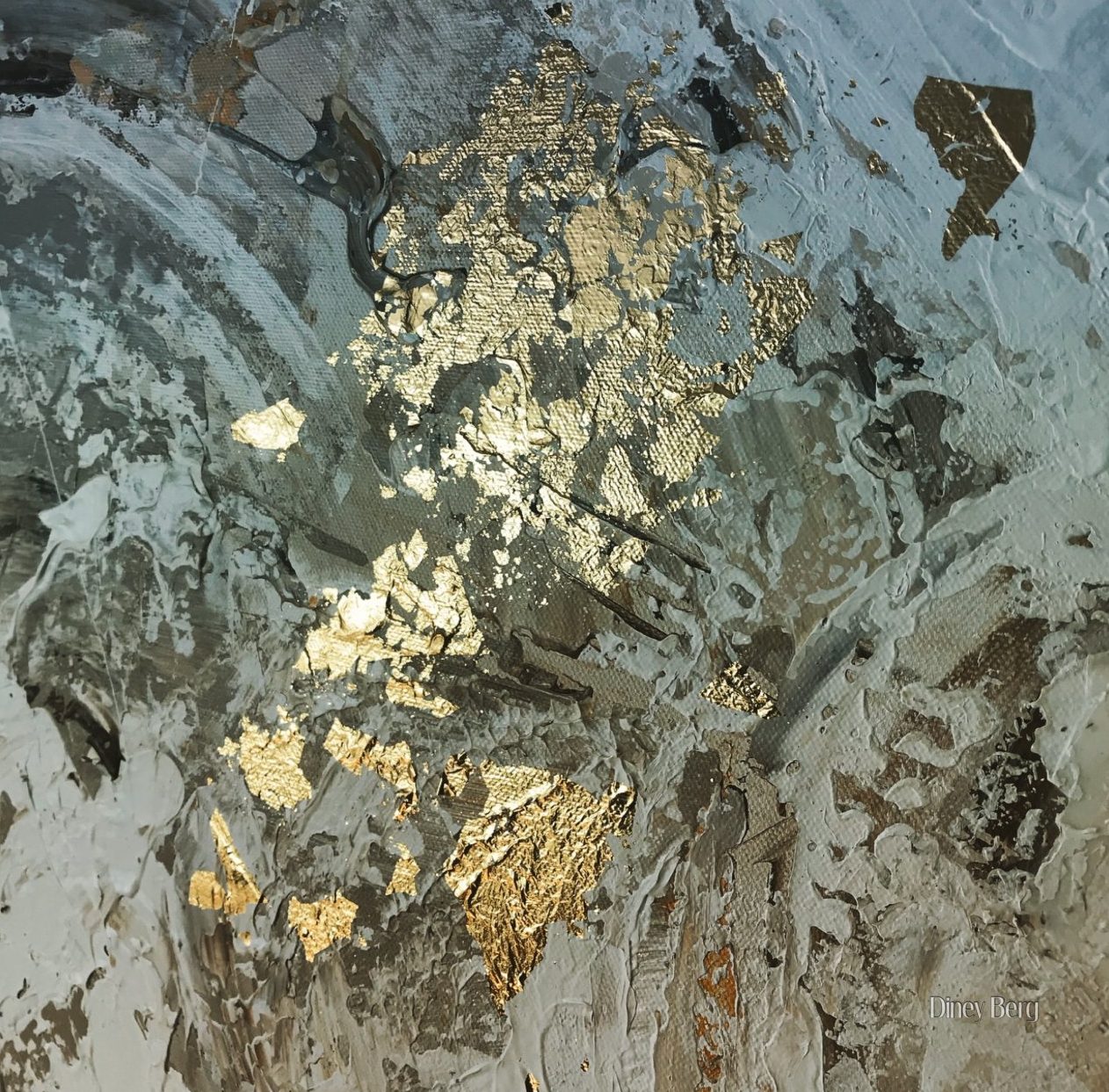 Een globale impressie van het schilderij "Gold leaf 3" 80x80cm.