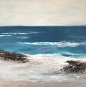 Een globale impressie van het schilderij "Secret beach" 80x80cm.
