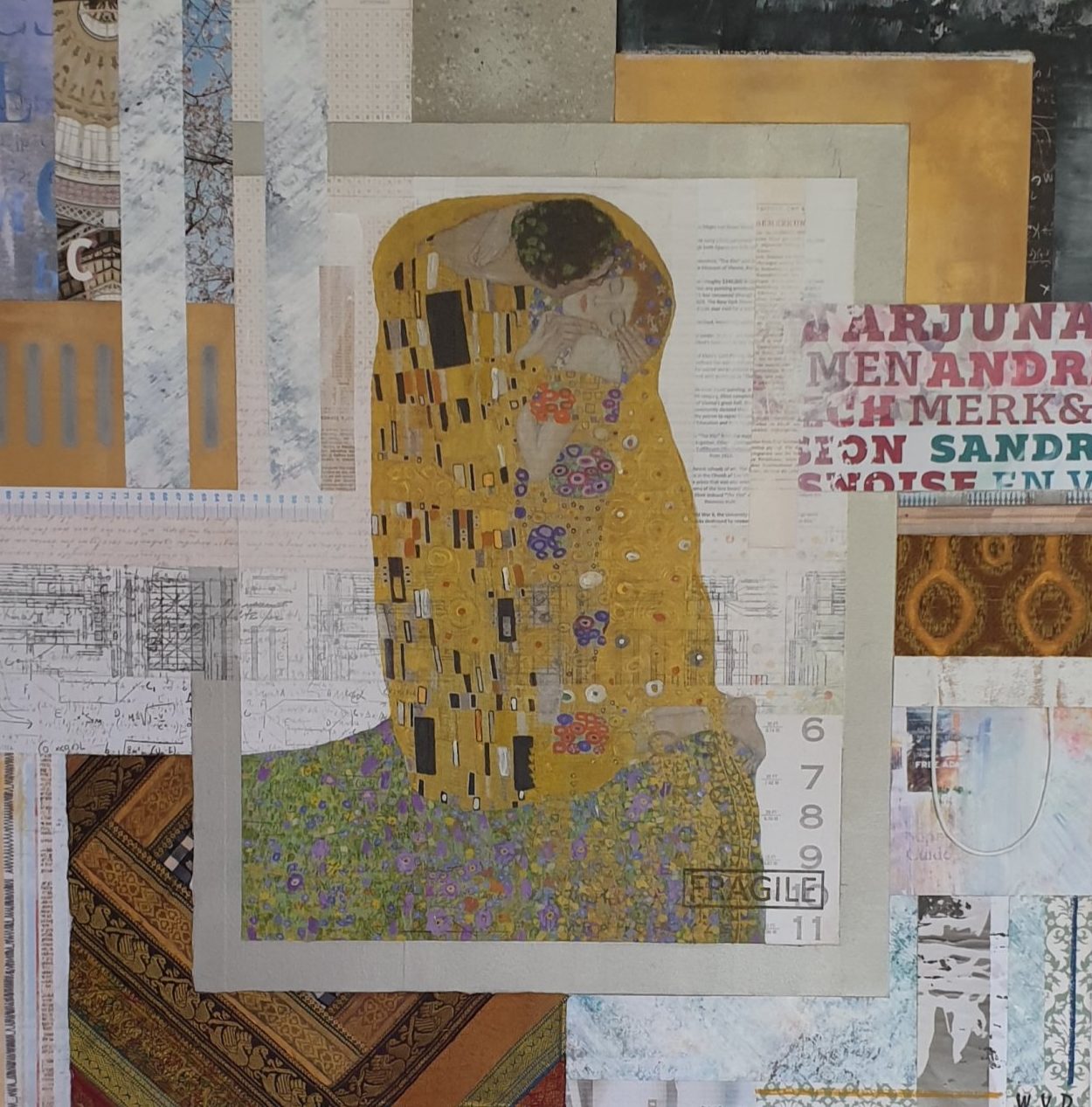Een globale impressie van het schilderij "The Kiss" 90x90cm.
