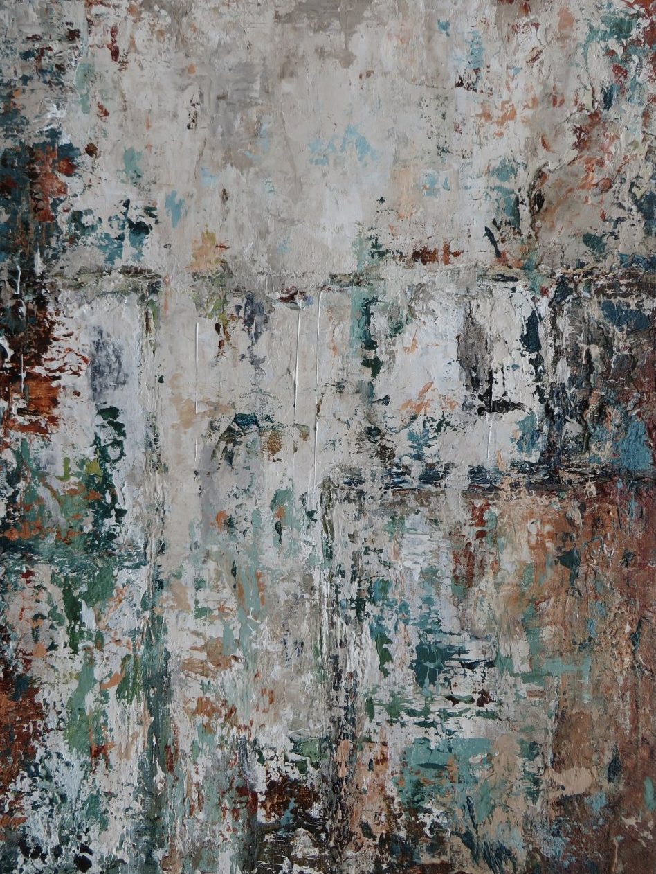 Abstract schilderij in acrylverf en mixed media op canvasboard.